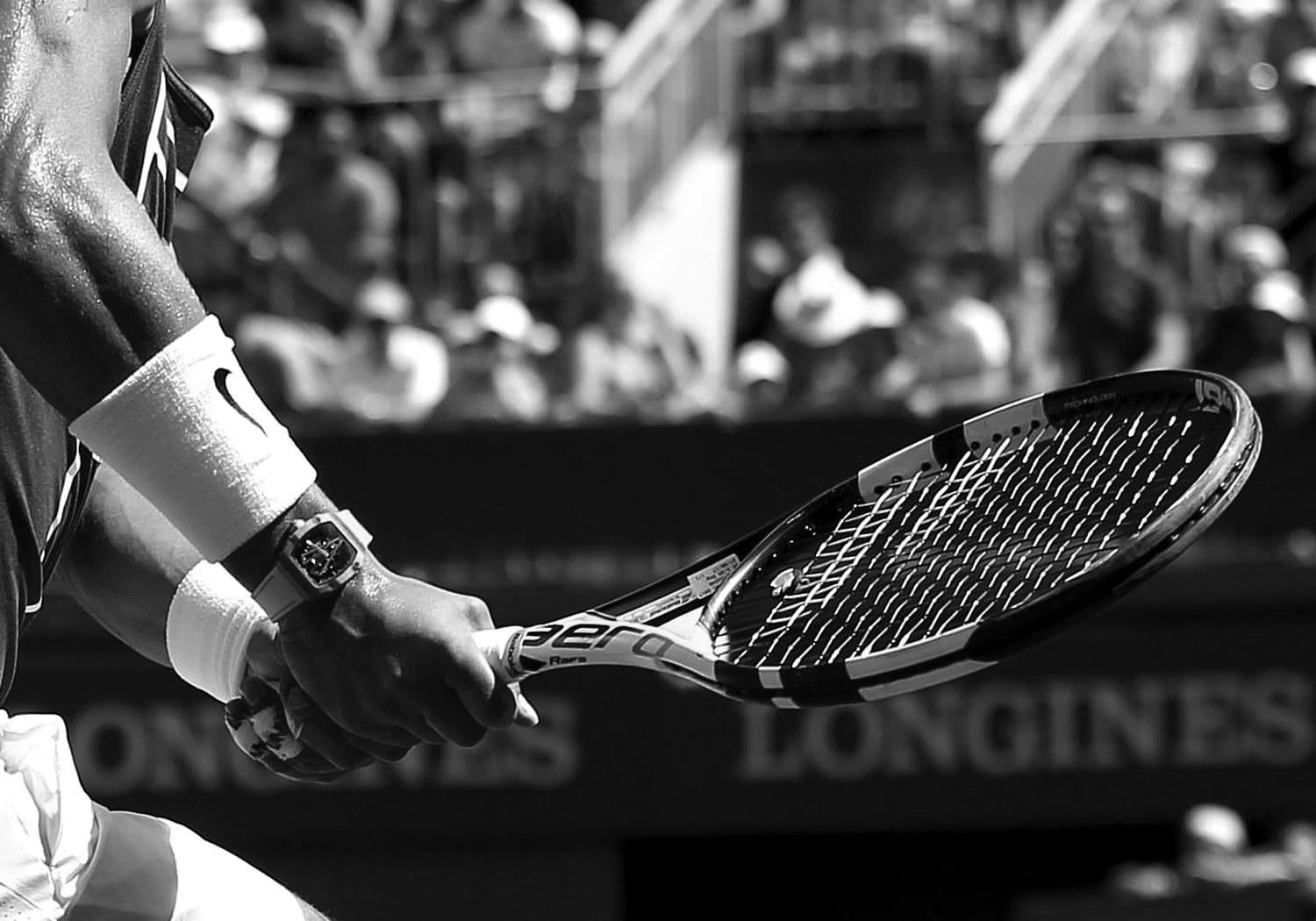 黑色RM 027陀飞轮引起轰动,不仅仅是因为西班牙人赢得了他参加的下一个大满贯赛事(罗兰加洛斯,温布尔登,美国公开赛 - 这是有史以来连续三次赢得大满贯冠军的第一人不同的球场表面); 许多粉丝和媒体成员都认为拉法穿着一件价格昂贵的配件背叛了他的脚踏实地的人格。我很难向媒体室的同事们解释说这不是钻石镶嵌的炫耀手表; 传统的机械制表采用了美国宇航局的技术,一种20克的时计,具有最高贵和最脆弱的复杂功能,陀飞轮,但设想能够忍受拉法暴力游戏的残酷肉体。